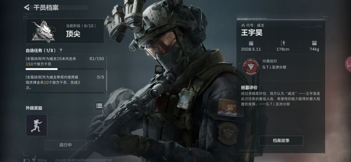 这个人这个任务反正我是做不了,感觉好难啊,我是主要打全面战的,烽火地带就20多级,那个磁吸炸弹削了之后根本不够,一局炸不了10人,然后想去机密大坝碰碰运气,看看能不能拿到那个虎蹲炮炸倒的任务,看见一个人一直站在那拿vss点死了,拿了这个坦克。