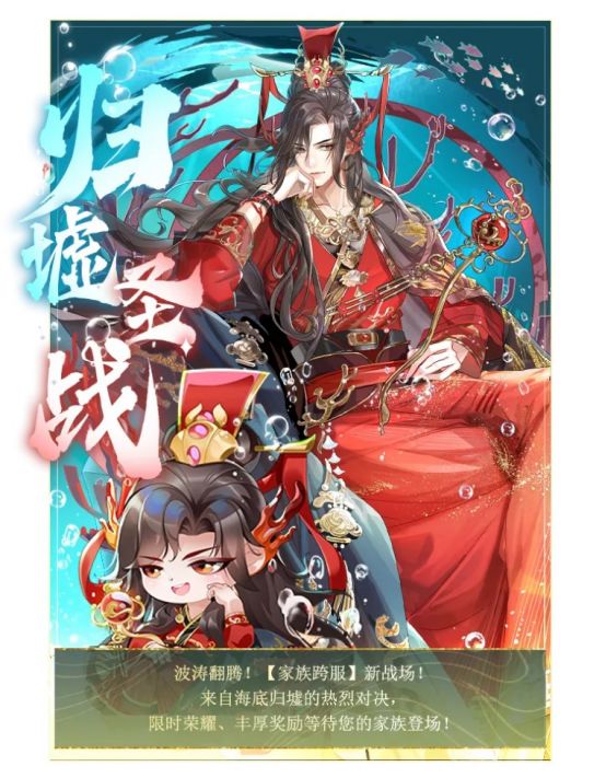 3、归墟圣战家族跨服战报名阶段,满足①家族成员达到10人②归墟圣战开启当周机关试炼家族总挑战次数达到18次③报名阶段需有任意一名家族成员登录游戏时,即可自动报名参与,无需族长或副族长手动报名