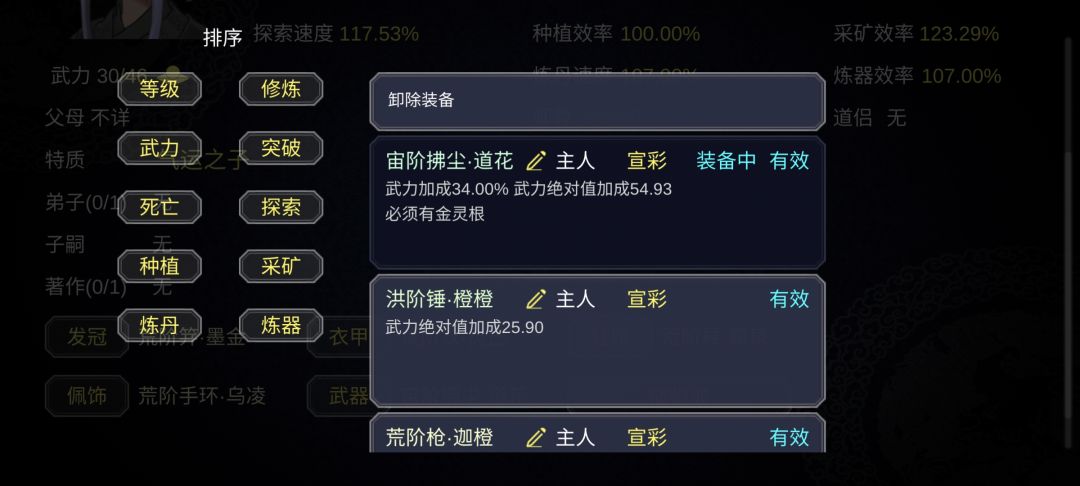 这个宙阶双属性的武器还没下面的洪阶的武器加的武力值高,我是个萌新可以确定没有功法加成,有没有大佬来给解释下