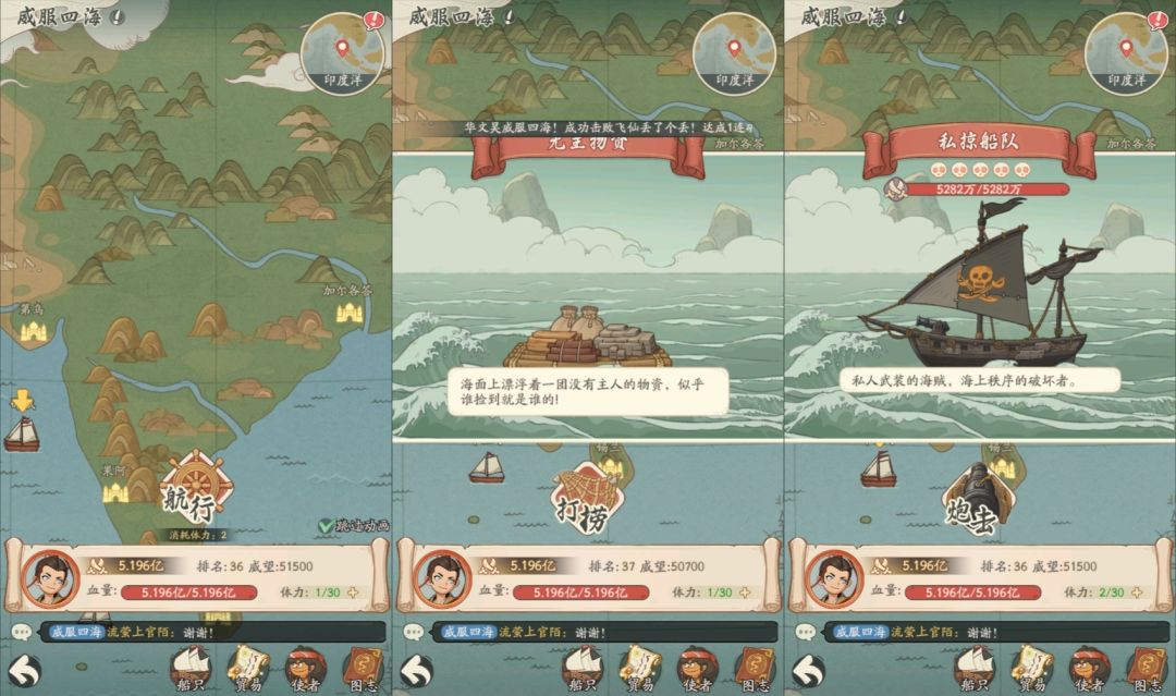 1、航行:启航后航行可以遇到各种事件获得不同奖励如下图所示: