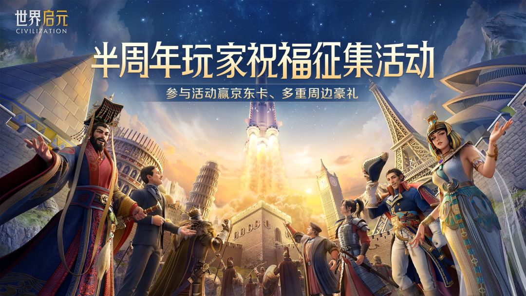 启元半周年,福利新纪元!世界启元在各位开拓者的陪伴下迎来了半周年庆典,半载同行,感恩有你。再过去的半年中,各位开拓者经历了不同联盟与文明的兴衰迭起,怒海狂涛的远航之路以及机甲跃迁的惊喜,只为拿下天空城的天神评级!征战不易,每一场战斗都令人印象深刻,也相信开拓者们有不少难忘的回忆与想说的话,正值半周年,我们向全体开拓者征集半周年祝福,参与祝福留言活动即有机会获取京东卡、海量限定周边豪礼!