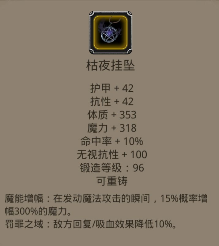 咸了一阵子灰岩的牢尸拿到枯夜,马上就来打战测,之前用血冠伤害才400w+,还是得看魔能增幅