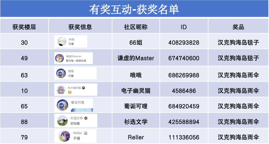 2. 每个参与活动的小伙伴只能获得一样奖励,如获得了汉克狗海岛毯子就不能在再获得汉克狗海岛雨伞了。