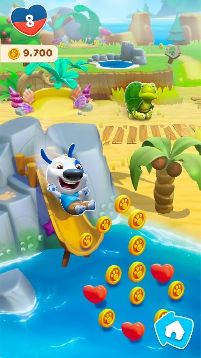 我们先来说说海岛探险。那只超可爱又会说话的汉克狗就像是你最亲密的伙伴,带着它踏上热带海岛的探险是多么惬意的事情呀。想象一下,在这个神秘的海岛上,你可以尽情展露自己狂野的一面。从高高的跳水板直接跃入那湛蓝的大海,感受溅起水花的刺激;骑上炫酷的摩托车风驰电掣地穿梭在海岛之间,或者悠悠哉哉地从长长的滑梯滑下;要是累了,就在海里悠闲地游泳,仿佛自己就是这个海岛的主宰。