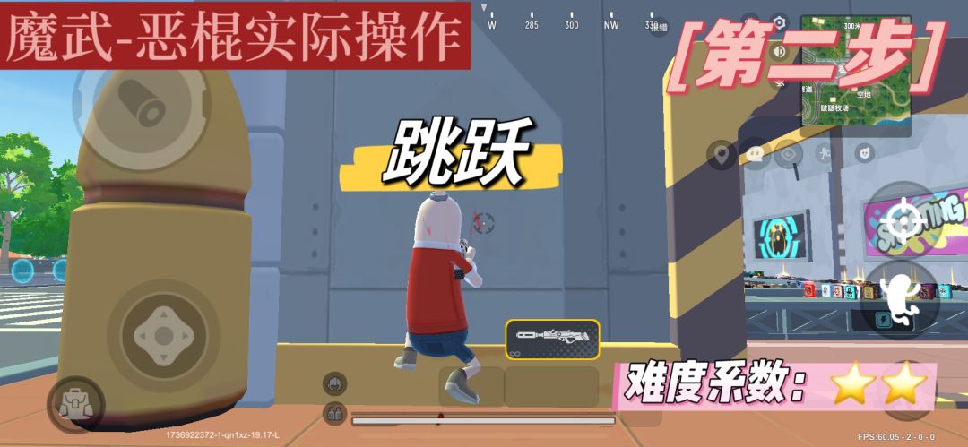 b.第二步,跳跃。你别看这个动词那么简单,这里指的不是平时的跳跃。我们需要连上第一步,蓄力后,再点击跳跃,其目的是取消后摇和节省时间。
