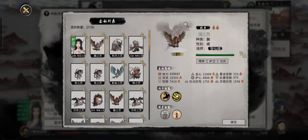 化形后的壶妖建议大家永修为丹喂到登仙后再化形,化形后可以继续喂丹药喂到登仙后期,放生后会变成好感度满的NPC,这个时候可以招纳进宗门,也可以结为道侣,登仙化形壶妖血量都在百万左右,战斗力很强,打宗门战百战百胜。
