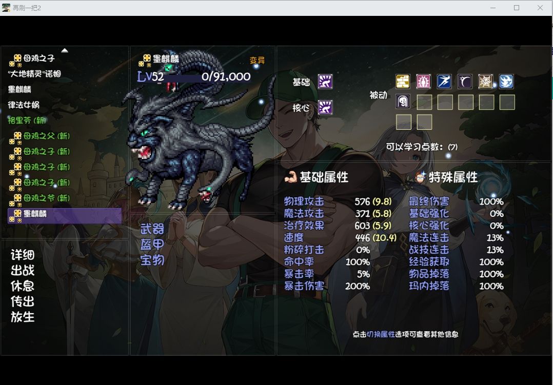 刚才只想着去抓只律法存点能吸出来的技能,没想到进去看到只好大的闪光墨麒麟,直接秒抓不说打开宝宝栏看到14格技能才发现是只变异哈哈哈哈哈哈哈,13格的抓不到直接抓到14格毕业了好爽!