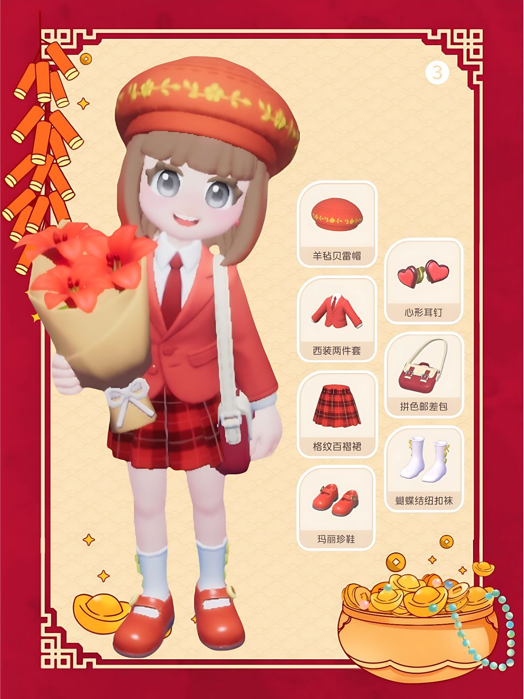今天来看看四套不同风格的红色系新年穿搭啦🎊