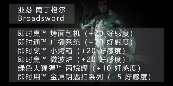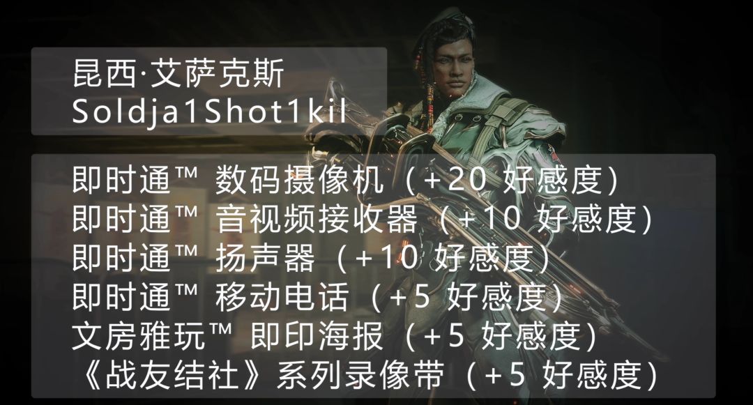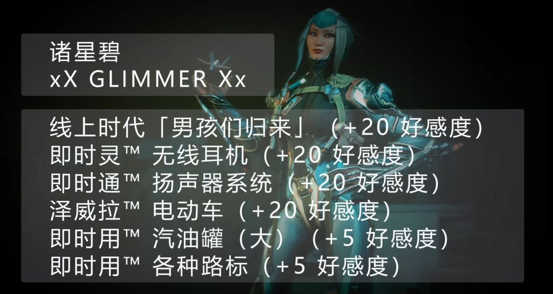 回顾以上部分,你每天有三种方式可以提升你和原型战甲的好感度。 以下选项会在每天协调世界时间 0 点重置。