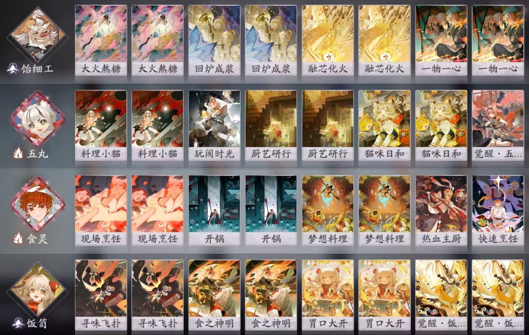 主要是战力队组件。9个式神数量偏多,如果不是冲着战力队的卡,那么非常不好集卡。