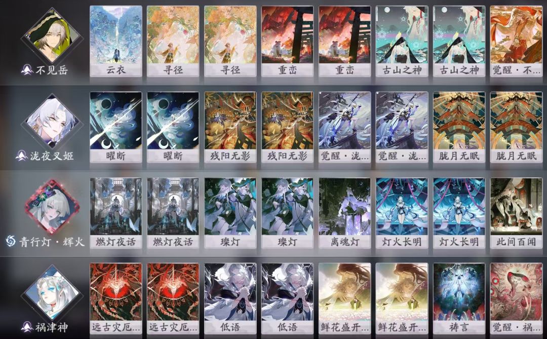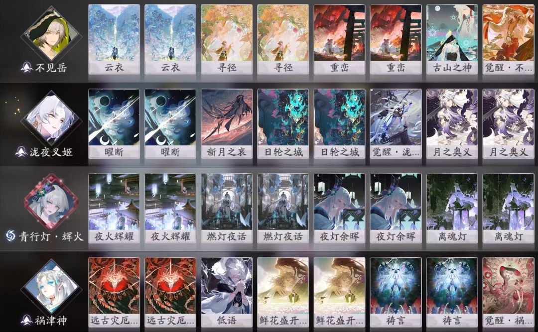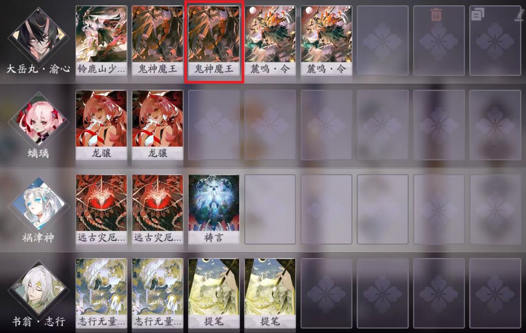 ①燃灯志异自选4个式神:妖刀姬·呪刃、二口女、犬神·历战、蜃气楼。