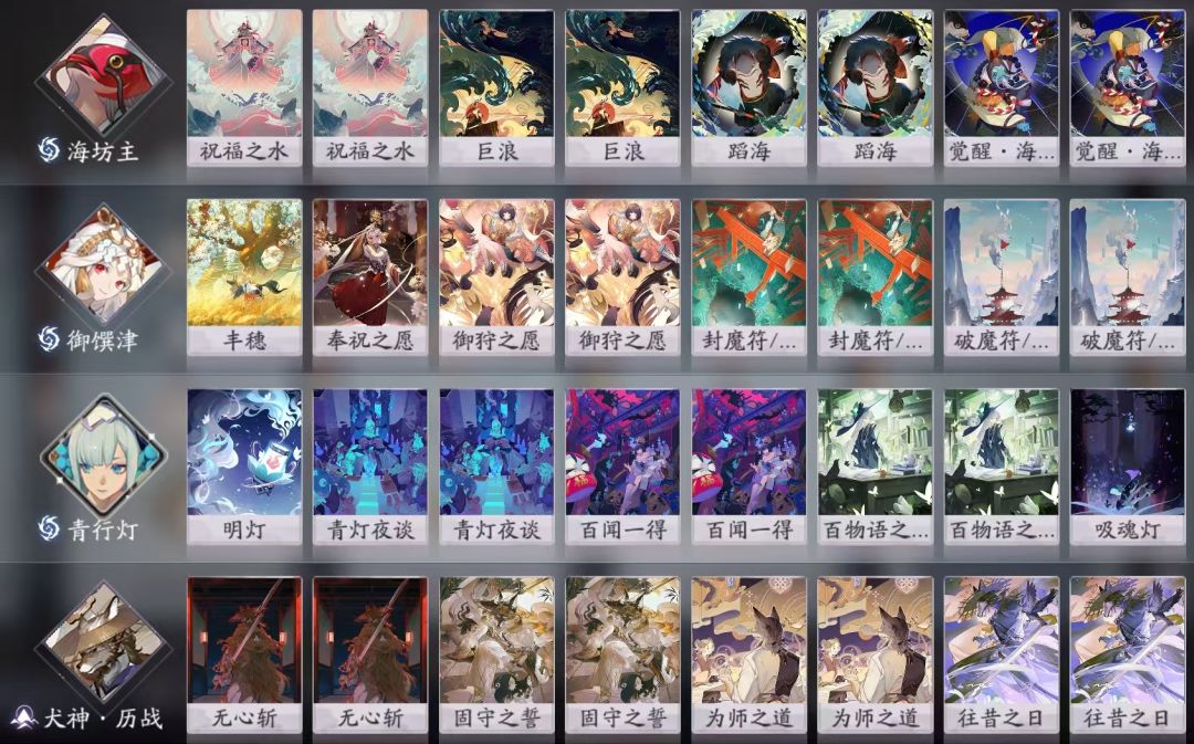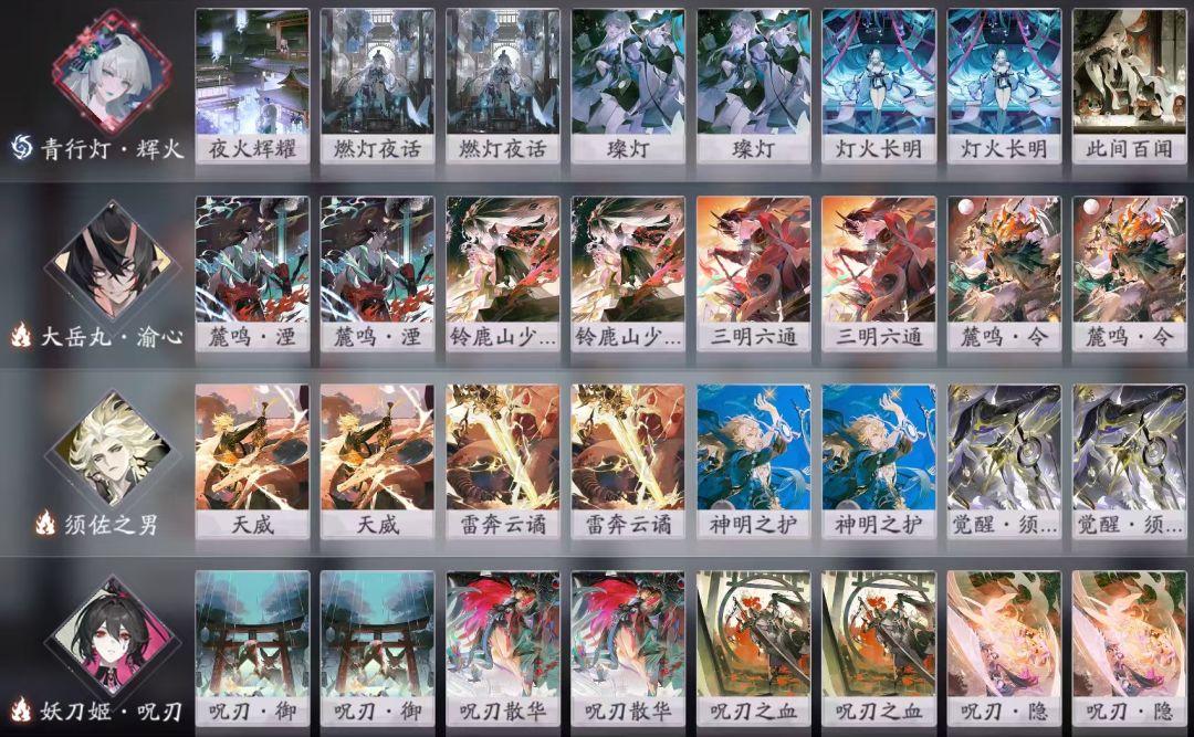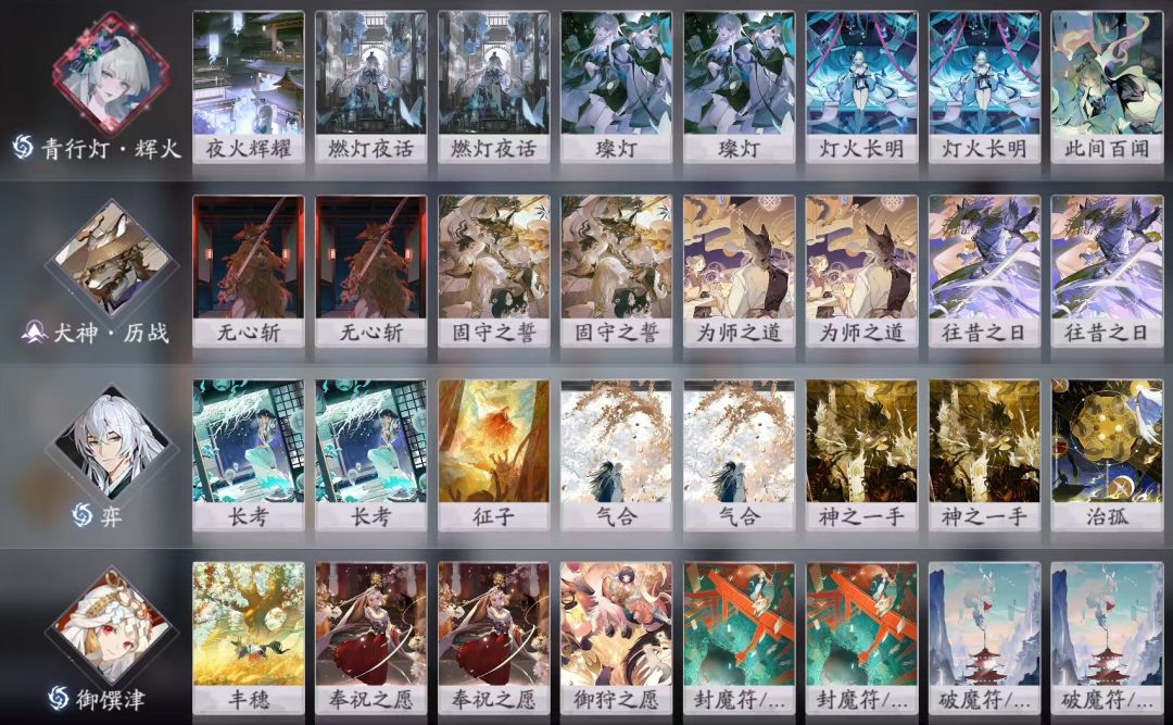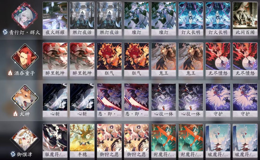 这版本被迫带上犬神这样偏抗快的式神,进一步带上御馔津这样的优质解后式神(这样可以起手不留解牌,增大二勾胡牌爆发的几率),往后期打。