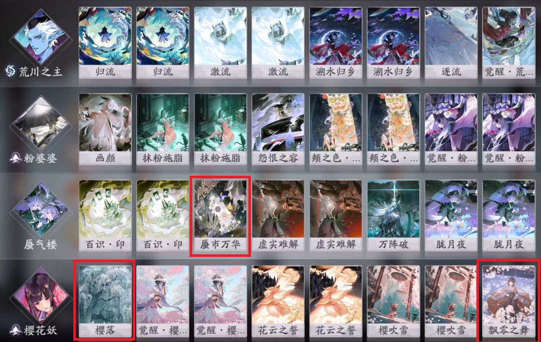 前述影响,蜃气楼带蜃市万华抗快,樱妖少带一张飘零之舞来避免前中期节奏不足。