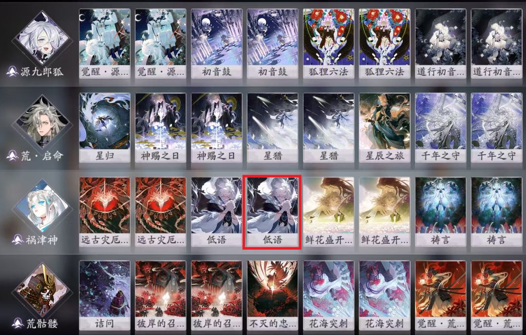 常见的有琅琊子、阿莱娜(lowb卡组内战),犬神·历战、青坊主·凡尘补频率,祸津神、荒骷髅抗快。