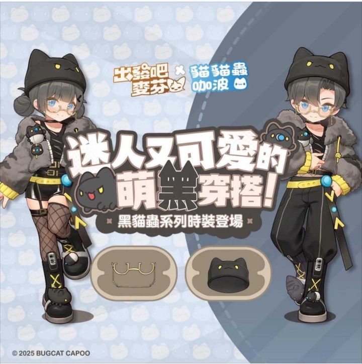 🐾 黑猫虫兄弟系列造型:头戴黑猫虫毛帽、脚踩幼猫虫厚底鞋,化身「黑猫虫家族」,萌黑美学爆表!还有「黑猫虫力量」武器,帅气又童趣!