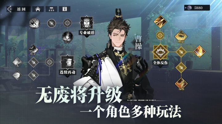 ⭐高自由度战斗:不按寻常套路出牌,高自由的策略战斗。随心切换职业,是强化输出收割战场,亦或运筹帷幄锁血迂回,一切皆由你来定夺。独特的武将设计,曹操不教天下人负我、吸收治疗化为自己护盾;张春华病娇心狠、自损增伤疯狂吸血;张辽威震逍遥津,可以隐身夜袭突后排....每个角色都不可替代。自由的羁绊搭配,历史上的宿敌或许能搭配出奇妙组合。突破回合制限制,你可以控火、回溯、控制行动条,借此改变战局!局局不重样,讲究妙用雷雨天气的限时关卡、充满随机乐趣的肉鸽玩法,让每个角色都有用武之地。