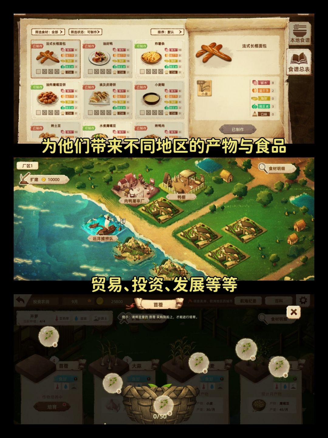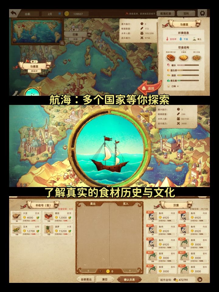 ✨真实的食材历史与航海地图,在游玩的同时了解城市信息与历史,感受文化差异。