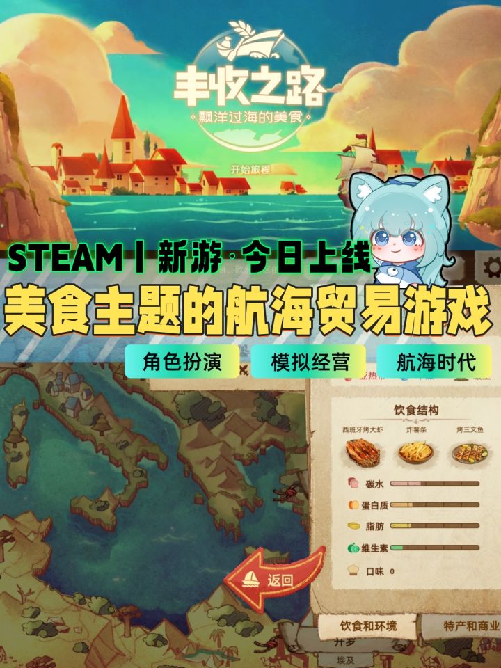 👉一款美食主题的大航海时代贸易游戏,作为丰收之神开启美食与冒险,通过航海发现各个大陆,与当地居民贸易、传播美食,提升饮食多样性。