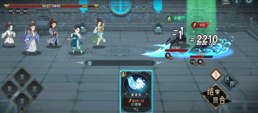 4.将凌白鹭的技能打光,中间抽空在水系灵气时把聂如嫣逆水击,ps技能符合条件处于增强状态会发光。
