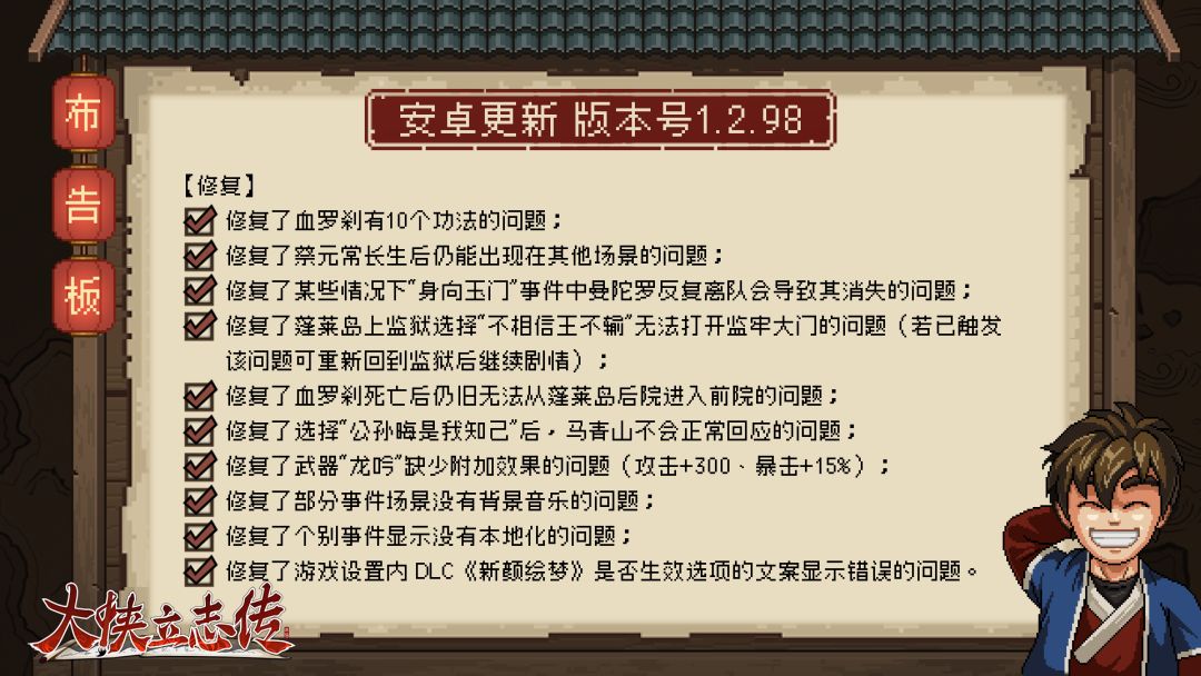 【安卓1.2.98丨iOS1.2.97】修复更新:血罗刹功法、曼陀罗离队等 - 大侠立志传综合讨论 - TapTap 大侠立志传论坛