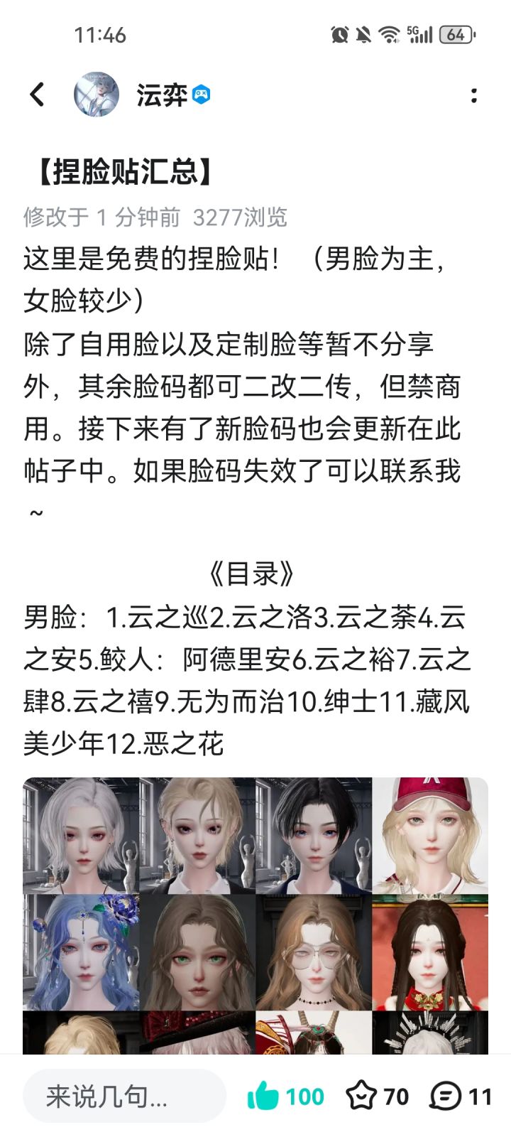嘿嘿纪念置顶帖子100赞,70收藏!基本上把所有脸码进行了优化更新以及指路贴整理!查找和使用更加方便啦