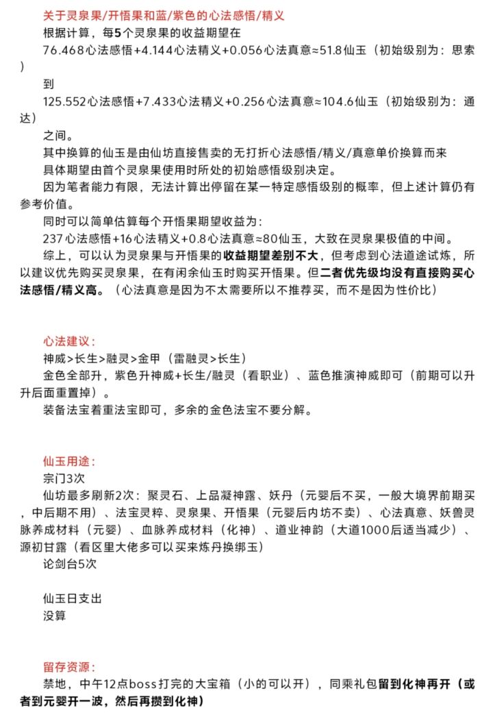 本文旨在帮助不愿意投入过多金钱、时间的玩家尽可能舒服地体验问剑长生的游戏内容。