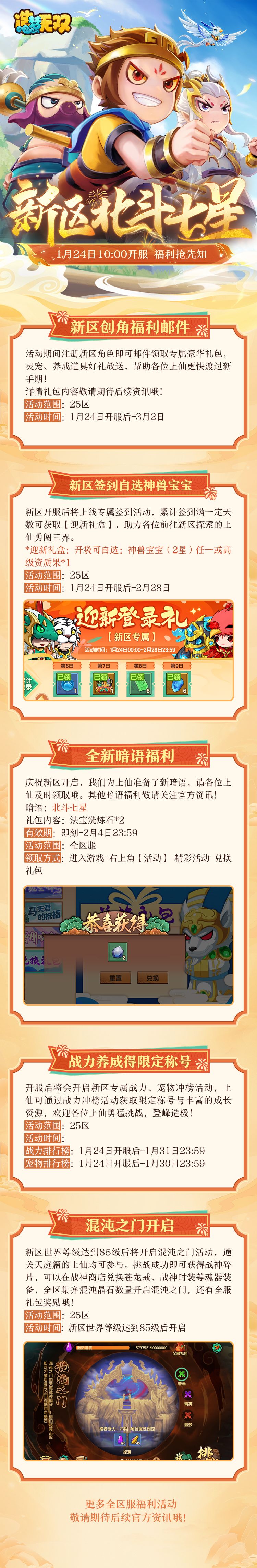 【25区北斗七星】新区1月24日10:00开服,海量福利抢先看