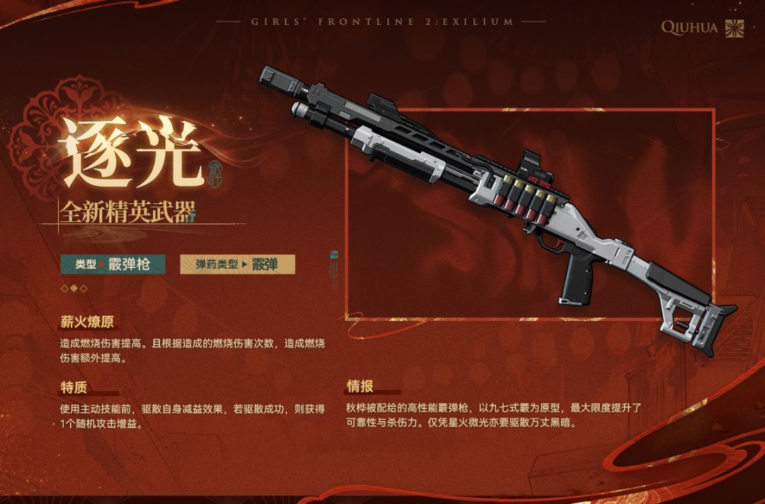 秋桦被配给的高性能霰弹枪,以九七式霰为原型,最大限度提升了可靠性与杀伤力。仅凭星火微光亦要驱散万丈黑暗。