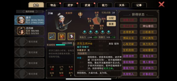 #大侠立志传天赋攻略