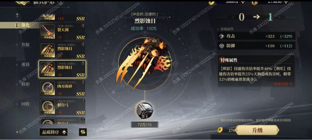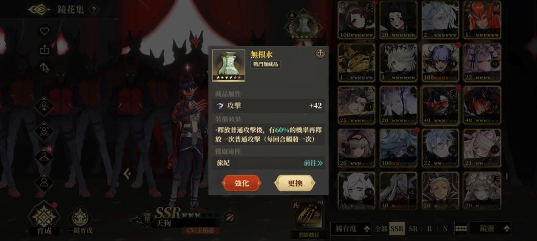 天狗神兵机制的进化对神兵本身强化等级及阶数较为依赖,当实战过程中觉得神兵的功能性输出能力不佳时可以尝试在神兵培养界面进行「强化」「升阶」「重铸」等操作,来使得神兵更为强大。