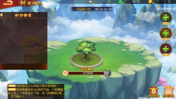 3、活动期间祈天神木获得的养成经验累计,以军团为单位在全服范围内排行,活动结束后上榜的军团可获得对应的排行奖励。