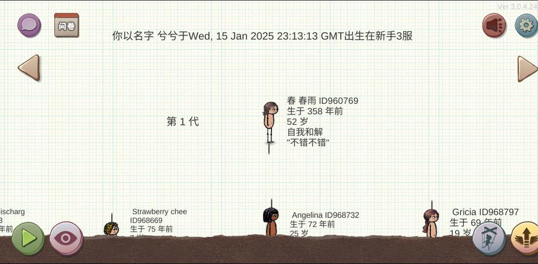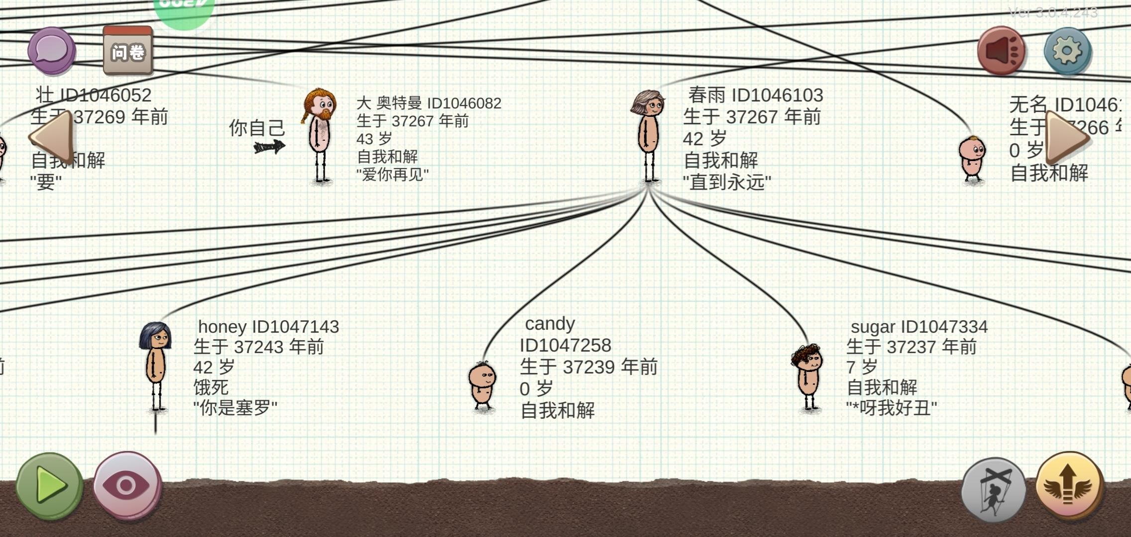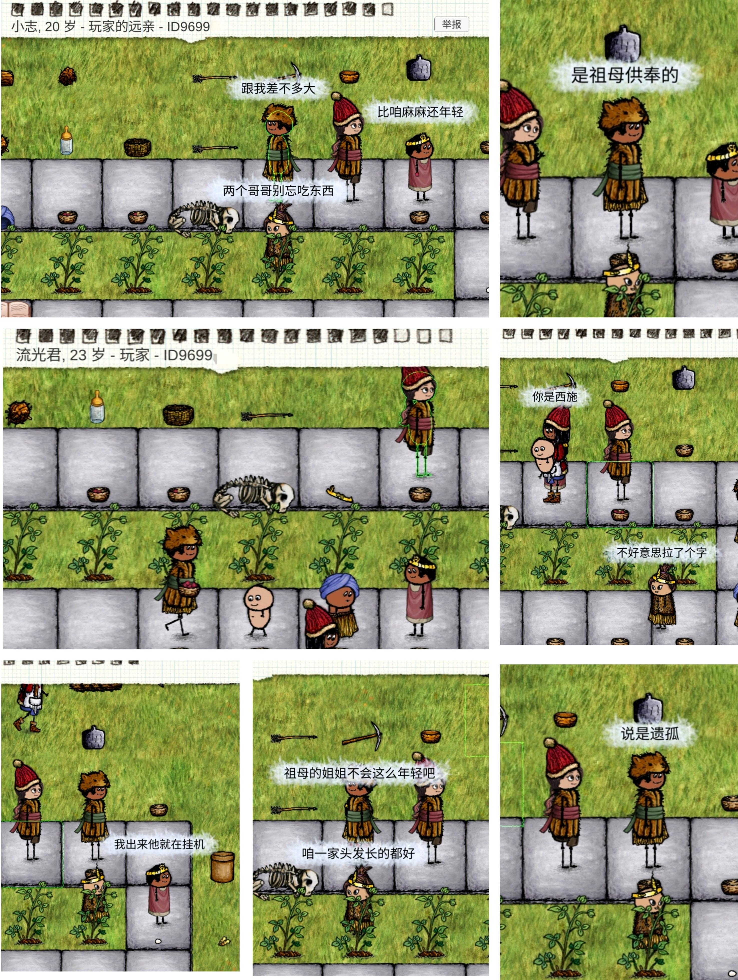 稍大些,我出远门去找绳子做弓箭去了,麻麻的大仇要报,表姐独自照看家里。本以为很快归来,结果路途遥远(绳子太远),此去经年,表姐的女儿们长大了又夭折,我还没有回来……那些不在的日子里,不知表姐是否遥望远方,盼故人归……终于,我带着第三支箭和我的第一个孩子回来了,这个孩子居然是目前家族唯一存活下来的下一代,我给他取名太初,盼望这片土地上的故人可以归来……