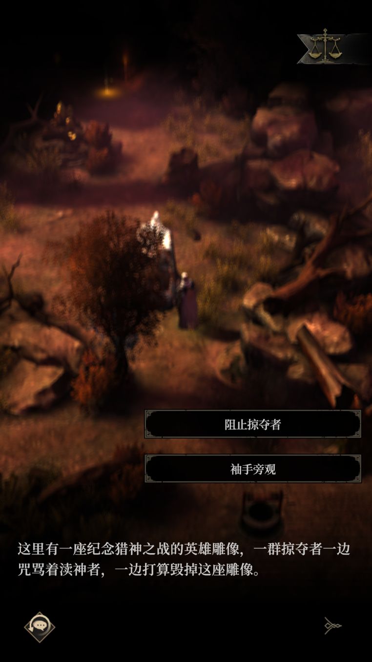 当目睹英雄雕像被掠夺者破坏,你又会作何抉择?共有6056(85%)位堡主选择阻止掠夺者,人性值「守序」+1。