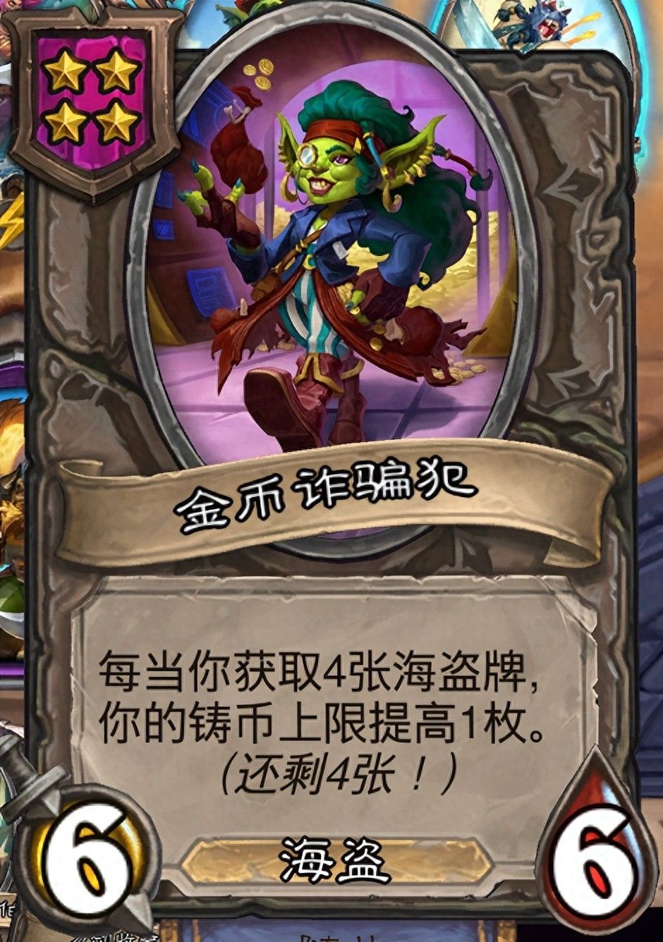 金币诈骗犯是海盗经济的核心体系,每获取四张海盗牌就会增加铸币上限,这张卡来的越早越好,和复利的性质差不多,越早启动越能拉开和对手的差距。海盗体系本身也有不少可以刷经济的手段,二本的白赚赌徒、三本的顽砂猎头、六本的海岸警卫都是不错的经济牌。