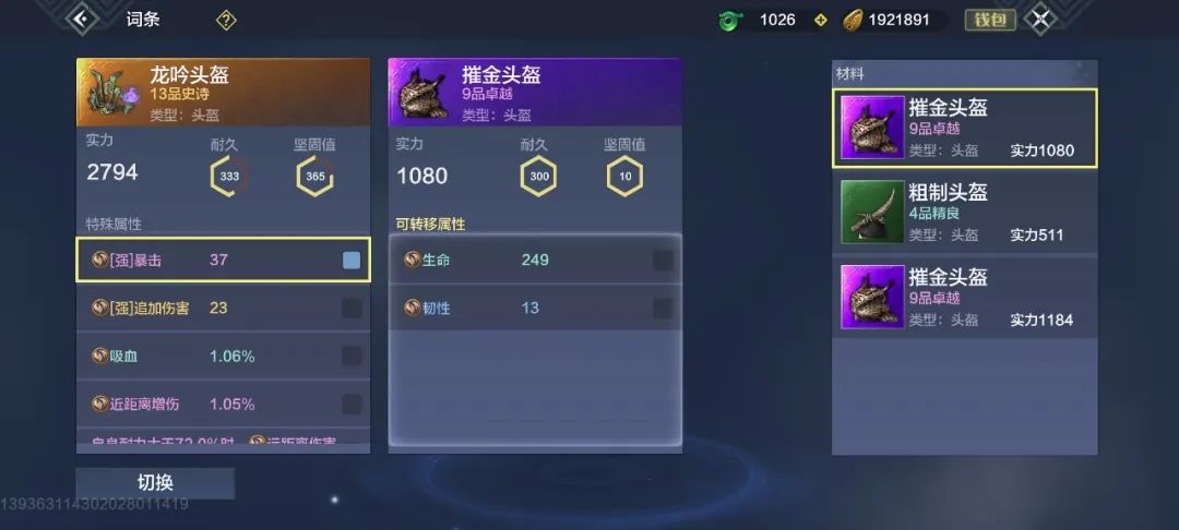 ②只有低品质装备能给高品质装备提供词条,高品质装备无法作为低品质装备的材料装备,如橙色装备无法作为紫色装备的材料,但是反之则可以。