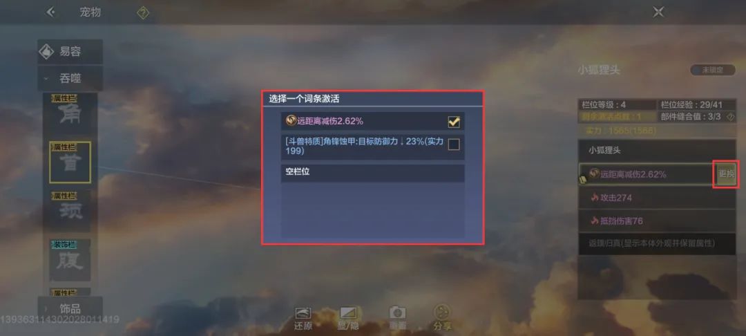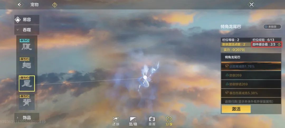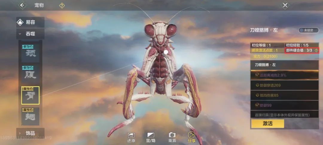 宠物的部位分为属性栏和装饰栏。装饰栏吞噬只会更改外观,属性栏吞噬部位后,可以更改外观,还可以获得属性词条(未激活)。(PS:在吞噬变异临时宠时,记得看看吞噬的宠物属性栏和对方提供的变异部位是否吻合。)