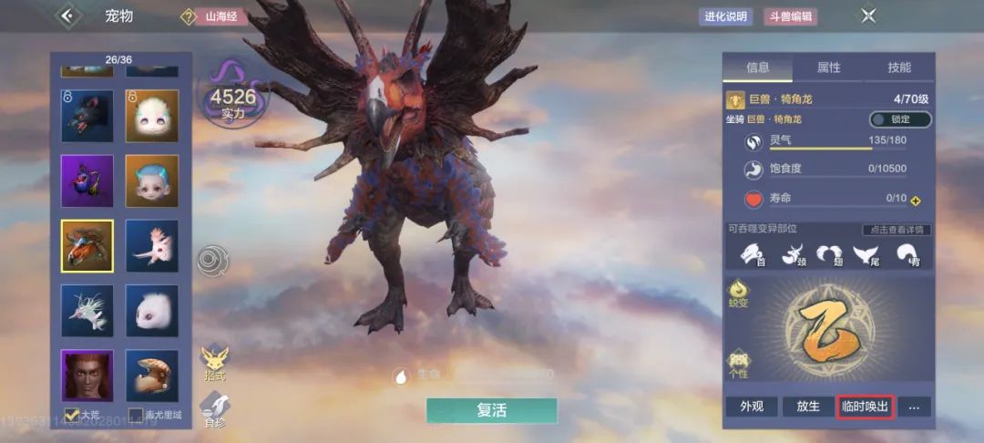 Tips:吞噬变异部位时会消耗缝合值,不过若是直接吞噬普通部位,则不会有影响,如果旅者在进化宠物,一时吞不到需要的部位,也可以通过孵化对应宠物,再通过临时唤出功能来吞噬指定部位~