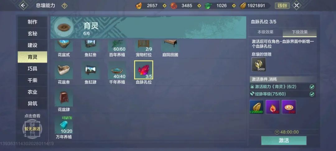 1-5阶血脉,在达成对应的等级要求后即可解锁,6-10阶血脉需要在【息壤-育灵-血脉孔位】处激活后才能解锁。(PS:激活血脉孔位只需要消耗贝币、千年兽魂、百年蛋荷包就行了哦~)