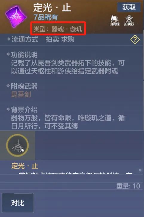 ● 璇玑器魂:①打高星游侠掉落;②【远山台-临摹-合成-器魂】,选择天工果制作,可获得随机的器魂·璇玑;③重天斗境商店可用承云珏购买随机璇玑器魂。