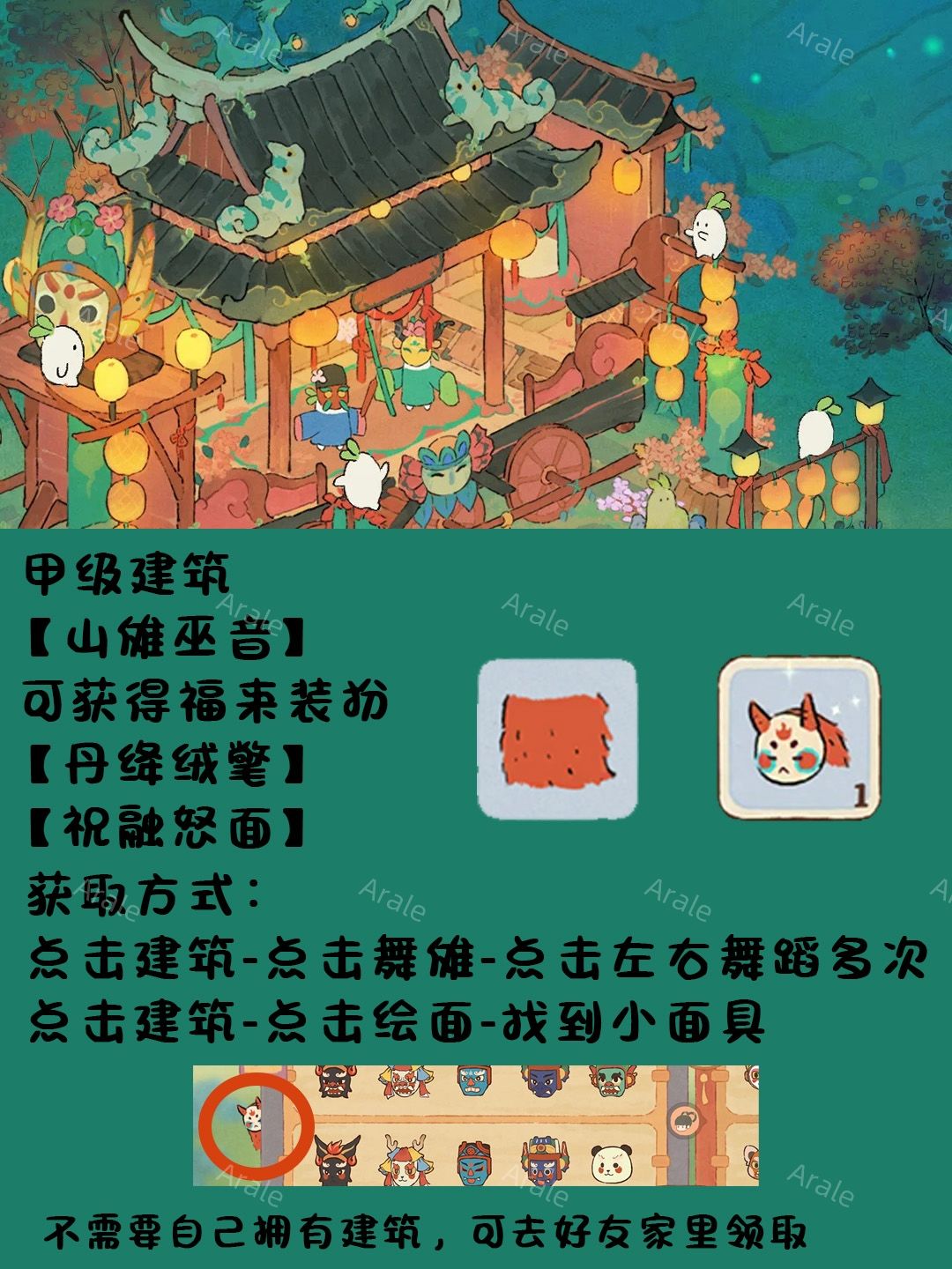 8.甲级建筑【山傩巫音】可获得福来装扮【丹绛绒氅】【祝融怒面】