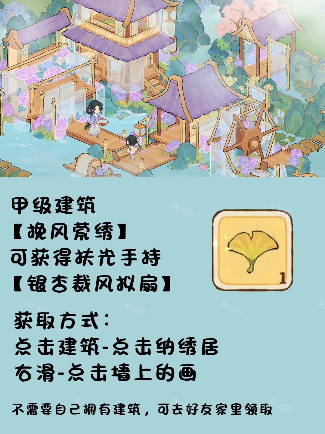 7.甲级建筑【挽风萦绣】可获得扶光手持【银杏裁风拟扇】