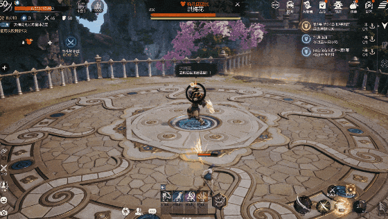 现在,就带大家深入了解一下洪梅花这位 BOSS 的机制特点。洪梅花手持重型武器斧子,一进入试炼,她便会抡起斧子,高高跃起,迅猛地向前跳劈。
