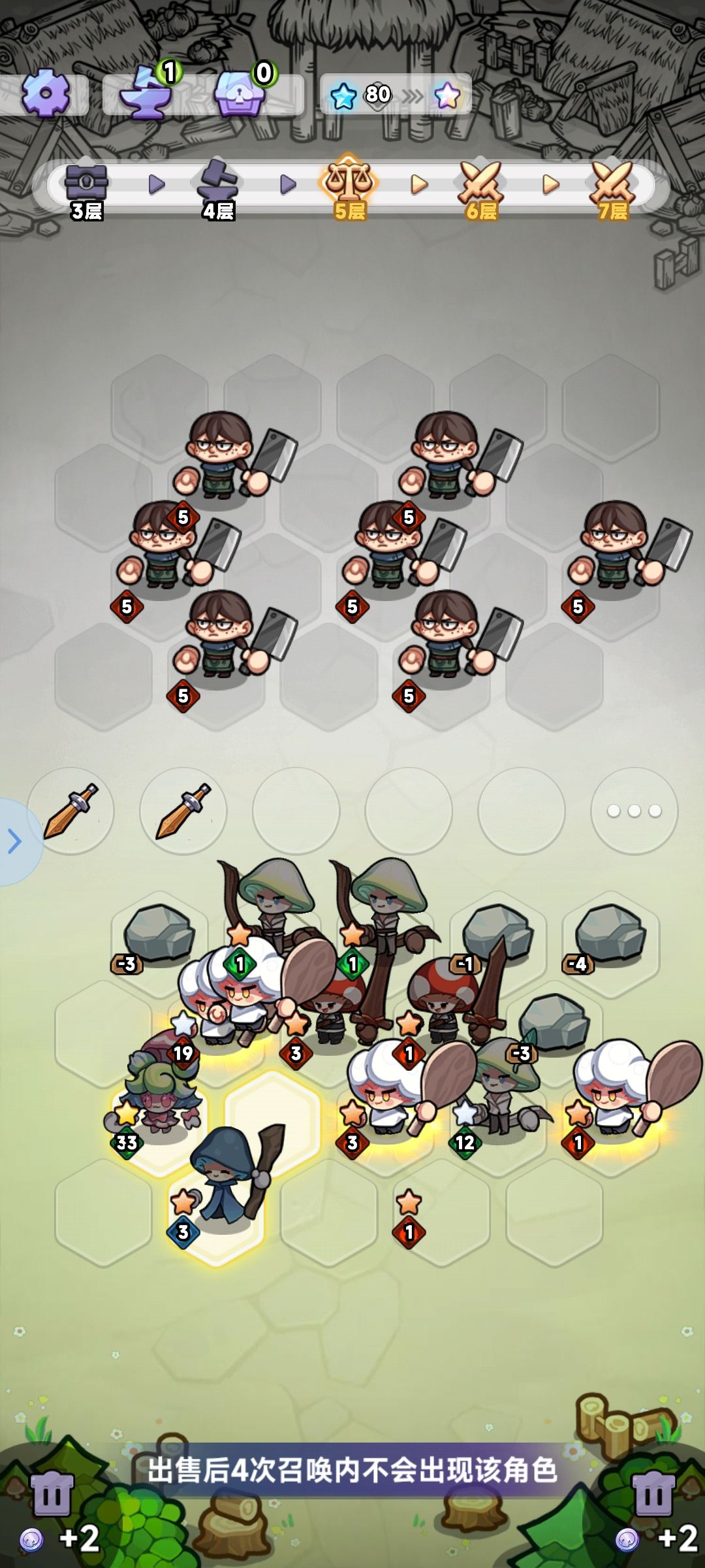 在关卡前几层可以先召唤尽量多的蘑菇,然后对主力蘑菇周边队友进行合成,会更容易彩星