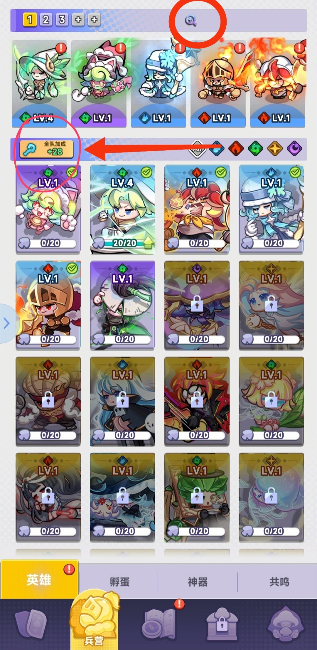 箭头为升星奖励,圆圈可以查看羁绊加成