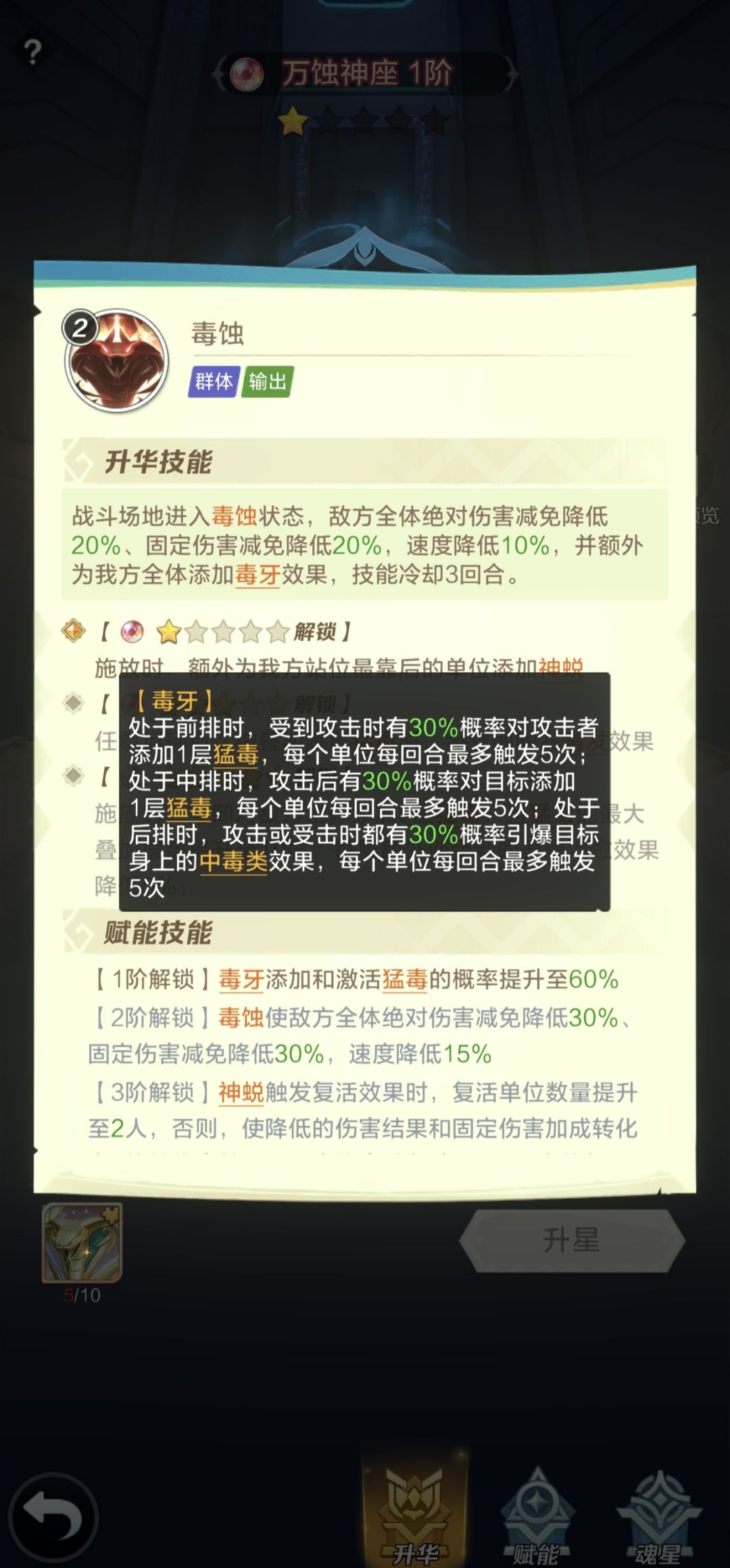 本人v11,累计氪度不足万,蛇头天耀1星赋能1阶,为什么会出这期帖子呢,因为这次很幸运,80抽出了保底10片附带10片,上了1星,想必小伙伴们兜里的钻石要么攒着未发,要么已经所剩无几了吧,废话不多说,以下是本人角度的非专业理解和评价