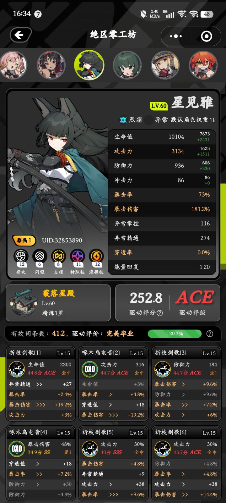 有三个队,雅队只养了雅,另外的两个角色感觉养了没多大用,我单纯拿50级苍角来给加成都可以危局布林格三星通关;以太队勉强毕业,朱鸢和凯撒驱动盘都是S S S;电队悠真刚开始养,驱动盘已经刷好了只是等级还没拉,丽娜则是完全没时间养,青衣很早之前就毕业了。