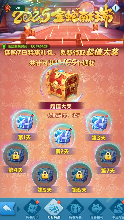 🧧七日特惠:活动期间,每天解锁一份特惠礼包,七日全购可领取免费大奖。
