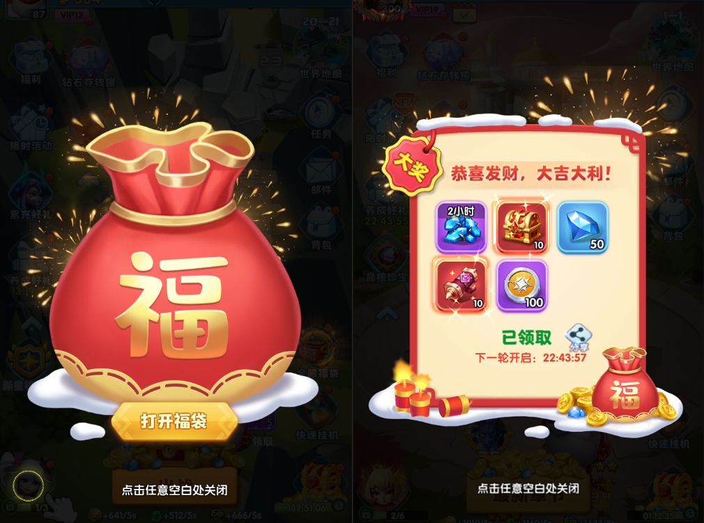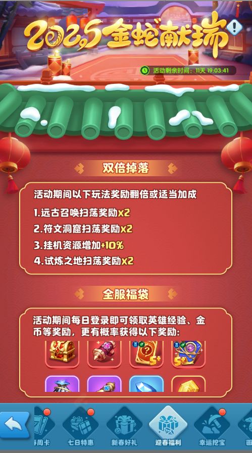 🧧迎春福利:活动期间,旅行者可享受远古召唤、符文洞窟、试炼之地副本扫荡奖励翻倍,挂机资源增加的特权。