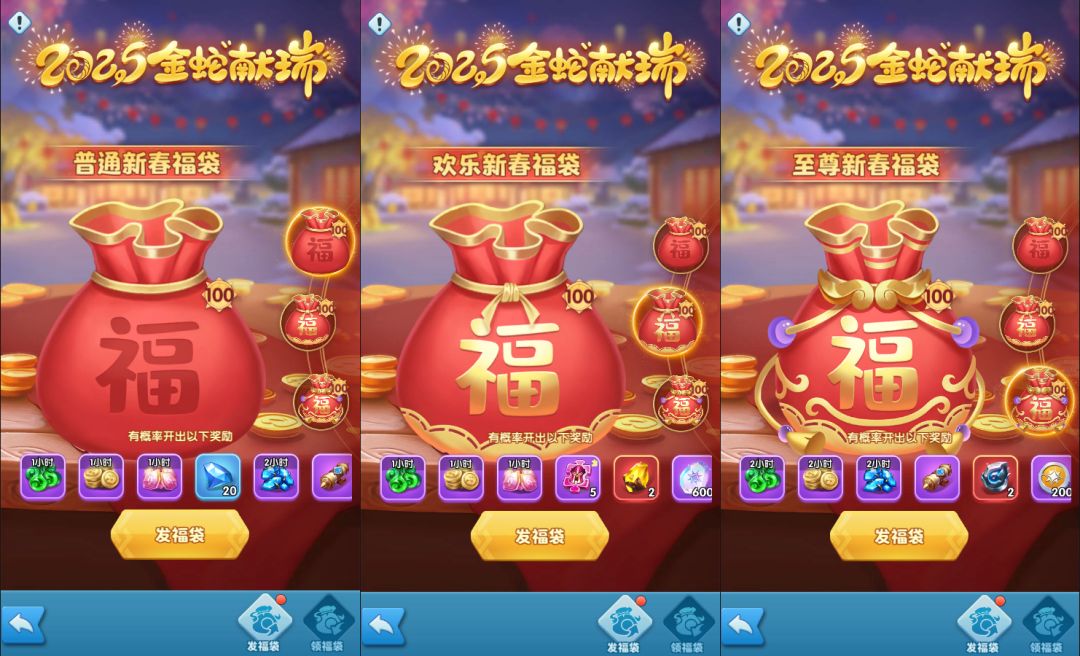 七、全服福袋🧧活动期间,每日0点~22点可领取一份新春福袋奖励,有概率开出惊喜大奖