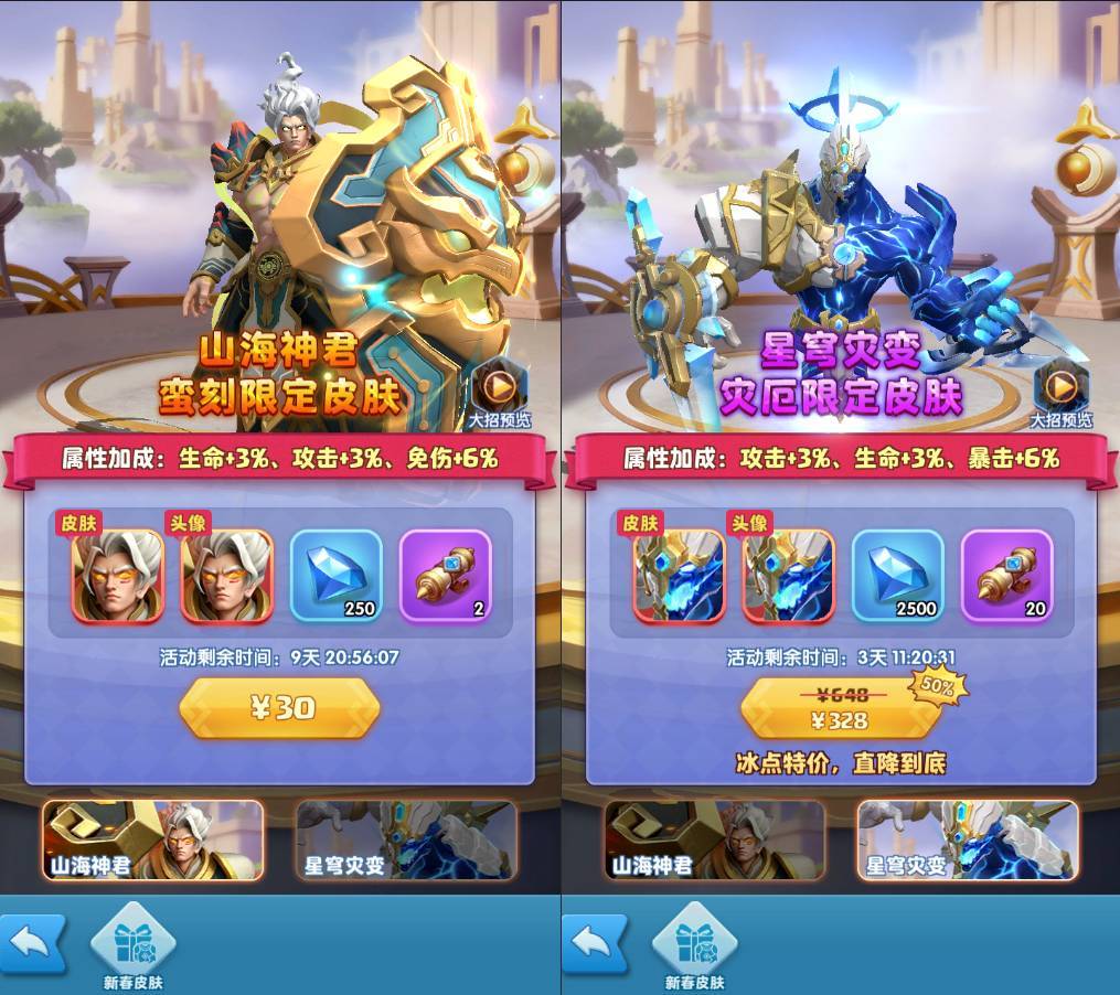 六、新春皮肤🧧活动期间,开放虚空之刃-星穹灾变、司门霸主-山海神君的新春皮肤购买。